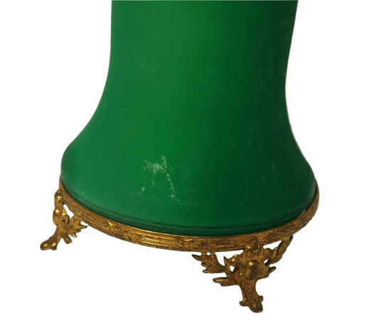 Mid-Century Green Glass Floral Vase with Ornate Brass Stand – 1960s-70s