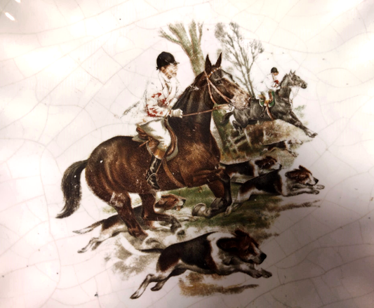 19th-Century Aveiro Hand-Painted Equestrian Scene Salad Bowl – Exquisite Portuguese Ceramic Art