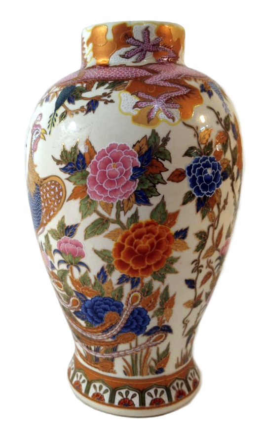 19th-Century Chinese Ornate Gilt Porcelain Vase – Floral and Avian Motif