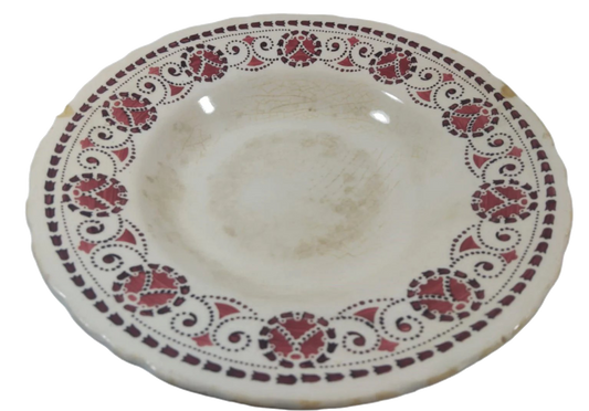 19th-Century Sacavém Factory Transferware Shallow Bowl with Red Scroll Motif