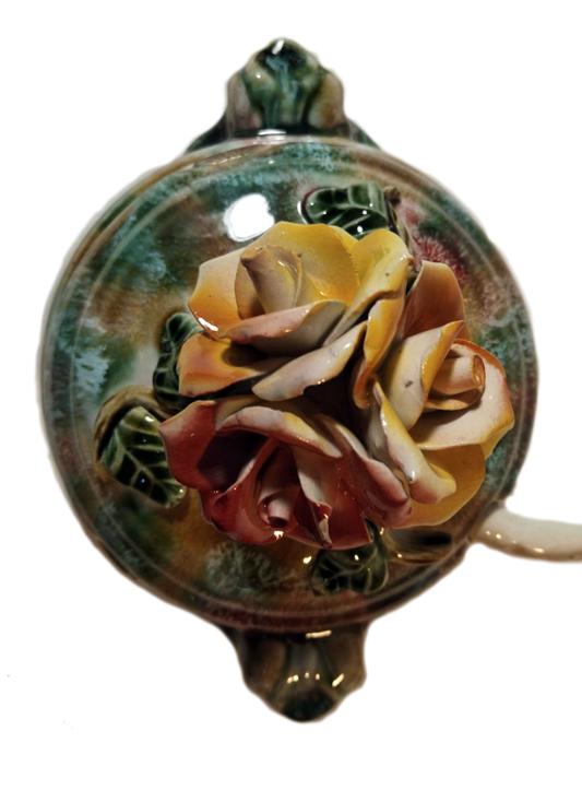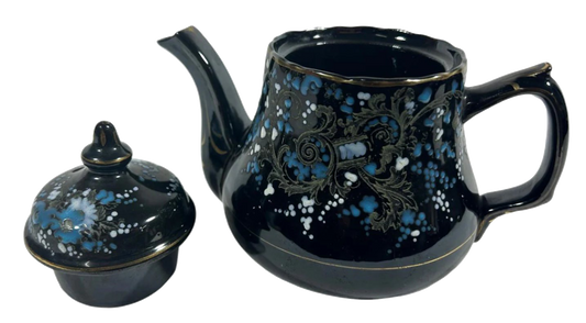 Victorian-Style English Ceramic Teapot with Hand-Painted Floral and Gold Detailing