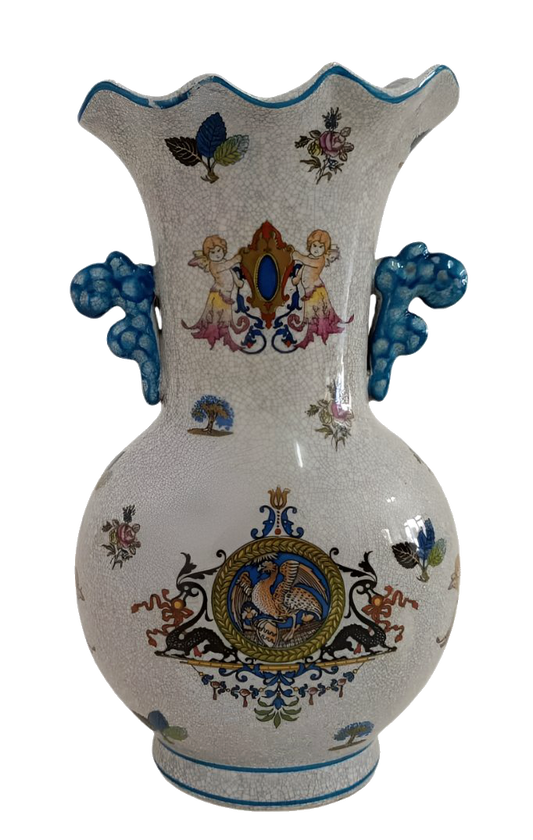 19th Century Chinese Macao Vase with Cherub Motif and Crackle Glaze