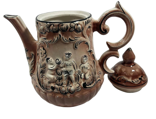 Early 20th-Century Alcobaça Ceramic Teapot with Hand-Painted Motif and Cherub Design