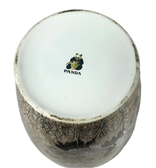 Mid-20th-Century Sacavém Decorative Vase with Crane and Floral Motif