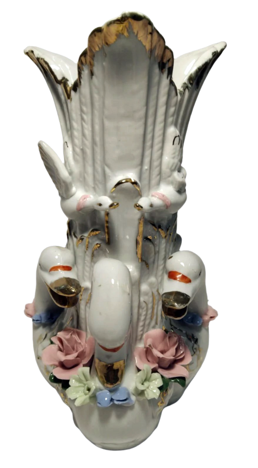 Charming 1960s-70s Filigree Vase with Swans and Floral Accents